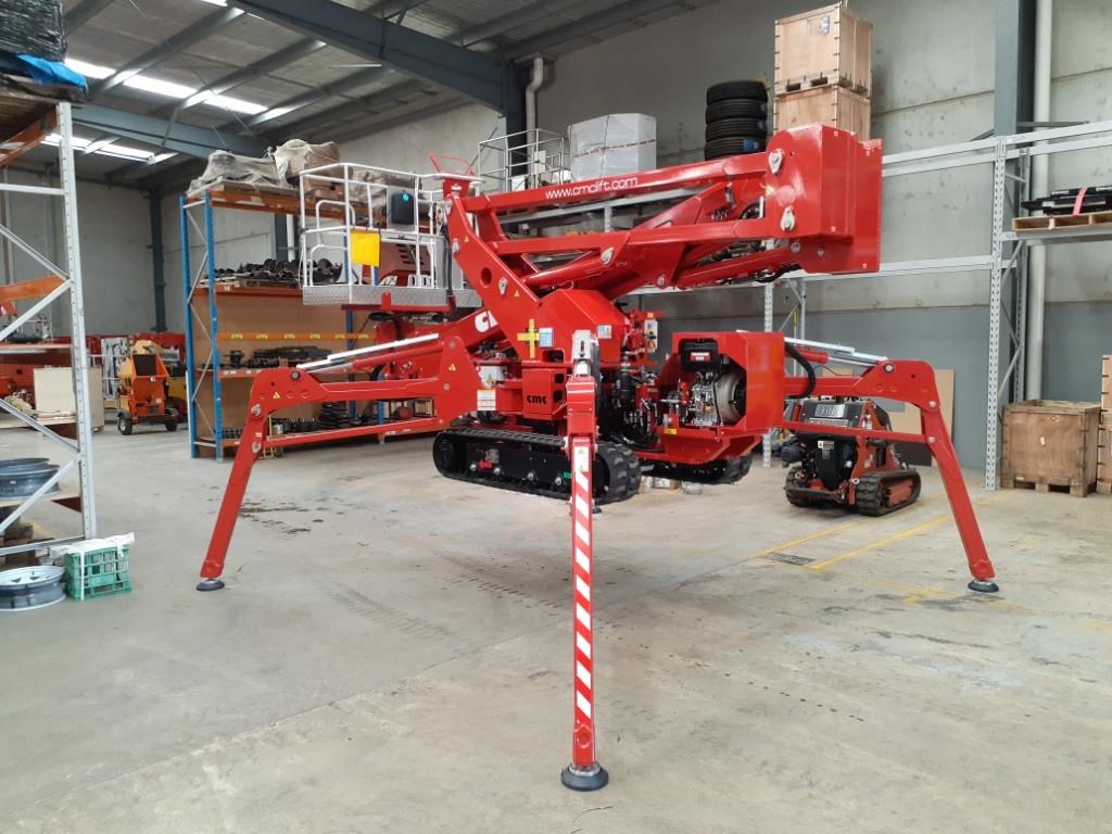 CMC S19HD - 18.7m Spider Lift ``Impressive side reach, so stable and secure!``, this is the first reaction and comment from everyone that takes a ride on the heavy duty S19. 11.7m is serious outreach for a lift capable of entering doors as narrow as 915mm. It features an extremely compact stabilization area with full side reach, including the ability to self level on steep sloped floors and terrain. In addition the S19 is also capable of setting up in "narrow mode", with an even smaller footprint. This special feature allows reduced outreach, yet capable of full 360° rotation and full vertical height reach. Designed and built with a configuration of one lower riser pantograph and two-telescopic boom extensions, the S19 allows for 200kg basket load and 180° basket rotation, with up to 19m working height. Compact dimensions of 900mm W x 1,99m H allows access in virtually any work area. Equipped with a double stabilization area and articulated outriggers capable of raising the entire lift approximately 1.5m in height, allowing safer lift self loading onto a truck chassis, avoiding the need to use "cumbersome loading and unloading ramps". Hybrid power source - quiet diesel engine/240v electric hydraulic power pack is standard. Easy to use control system with multiple toggles, allows for a smooth, comfortable and safe operator ride. Internet connectable control system allows for quick remote diagnostics and corrections, for less expensive maintenance.