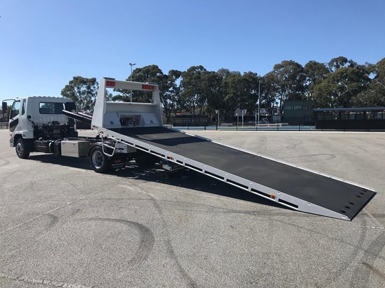 2019 Fuso Fighter 1424 White Beavertail 7.5l 4x2 - 2019 Fuso Fighter 1424 Beavertail. Low kilometres, 6m floor with folding hydraulic ramps run off a power pack. Stoneguard, Reverse Squawker, Beacon, Step up onto floor, Toolbox, reverse camera. Tare is 6,520 leaving a payload of 7,480kgs (TBC) Call the used truck sales team to arrange an inspection.