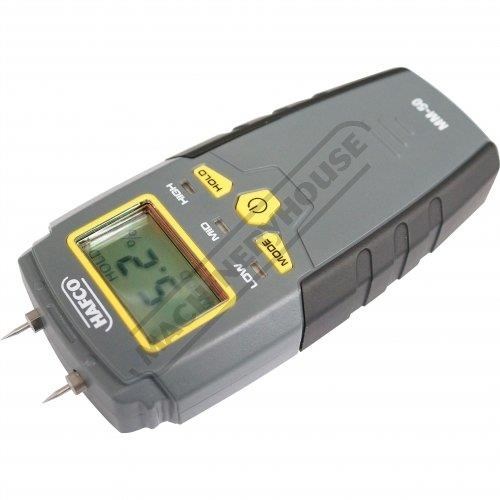 MM-50 moisture meter measures the moisture content by detecting the electrical resistance of the target material using two pins. The unit has low consumption single chip smart design, the moisture content is displayed by LCD.