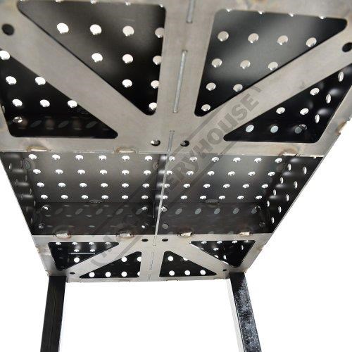Precision laser cut from 5mm steel this self-weld welding table has been designed with 100mm high sides along with 100mm high inter-locking solid steel ribs to ensure the table surface remains flat during & after assembly. Complete with 16mm laser cut holes with an industry standard 50 x 50mm grid pattern making it the perfect solution for both welding and clamping applications.