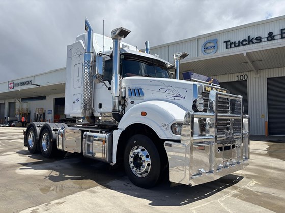 - 70,000kg GCM B-Double rated, Bullbar with LED lights, Jost fixed turntable, alloy rims, UHF, cruise control, cross locks/ diff locks