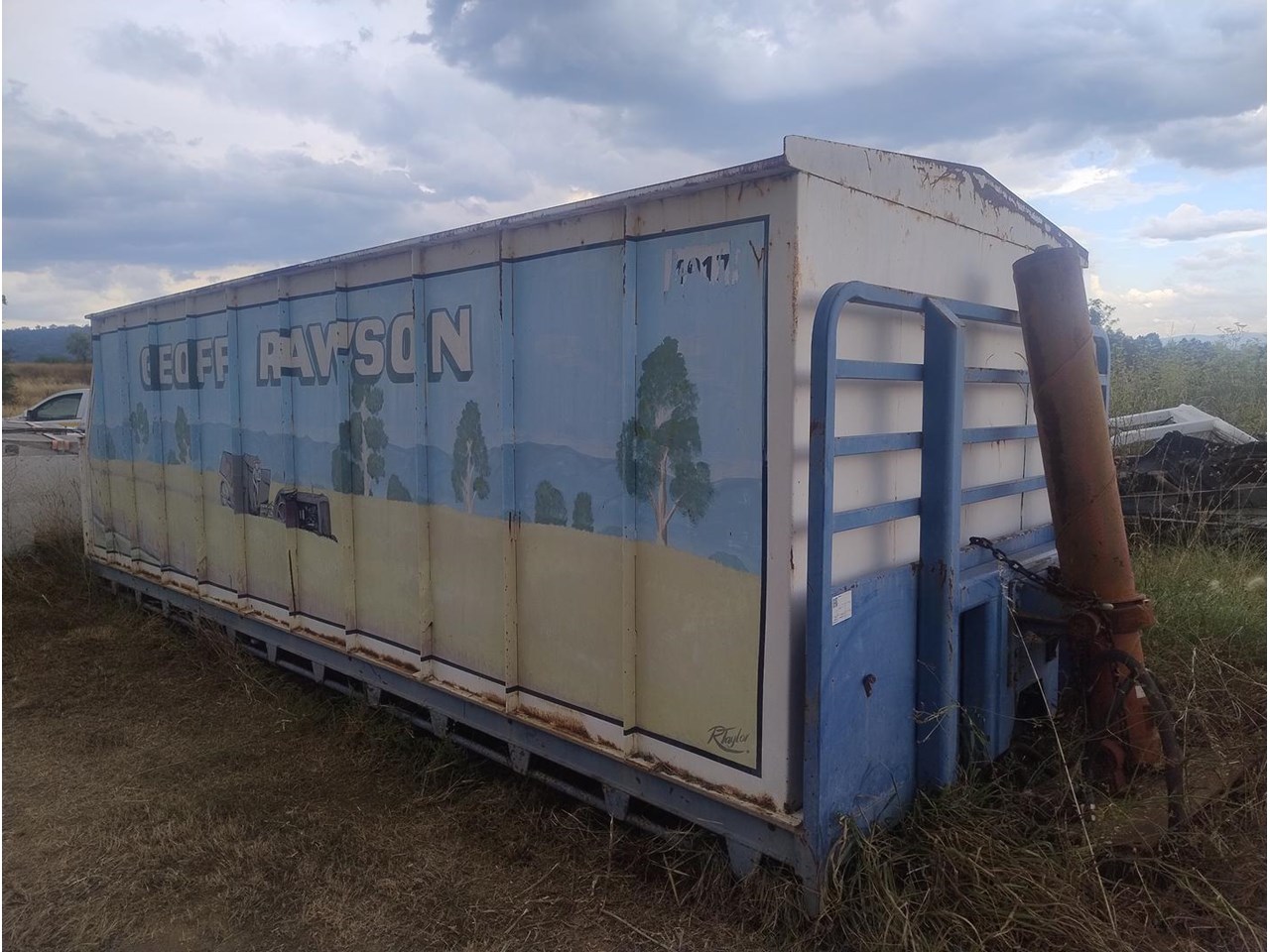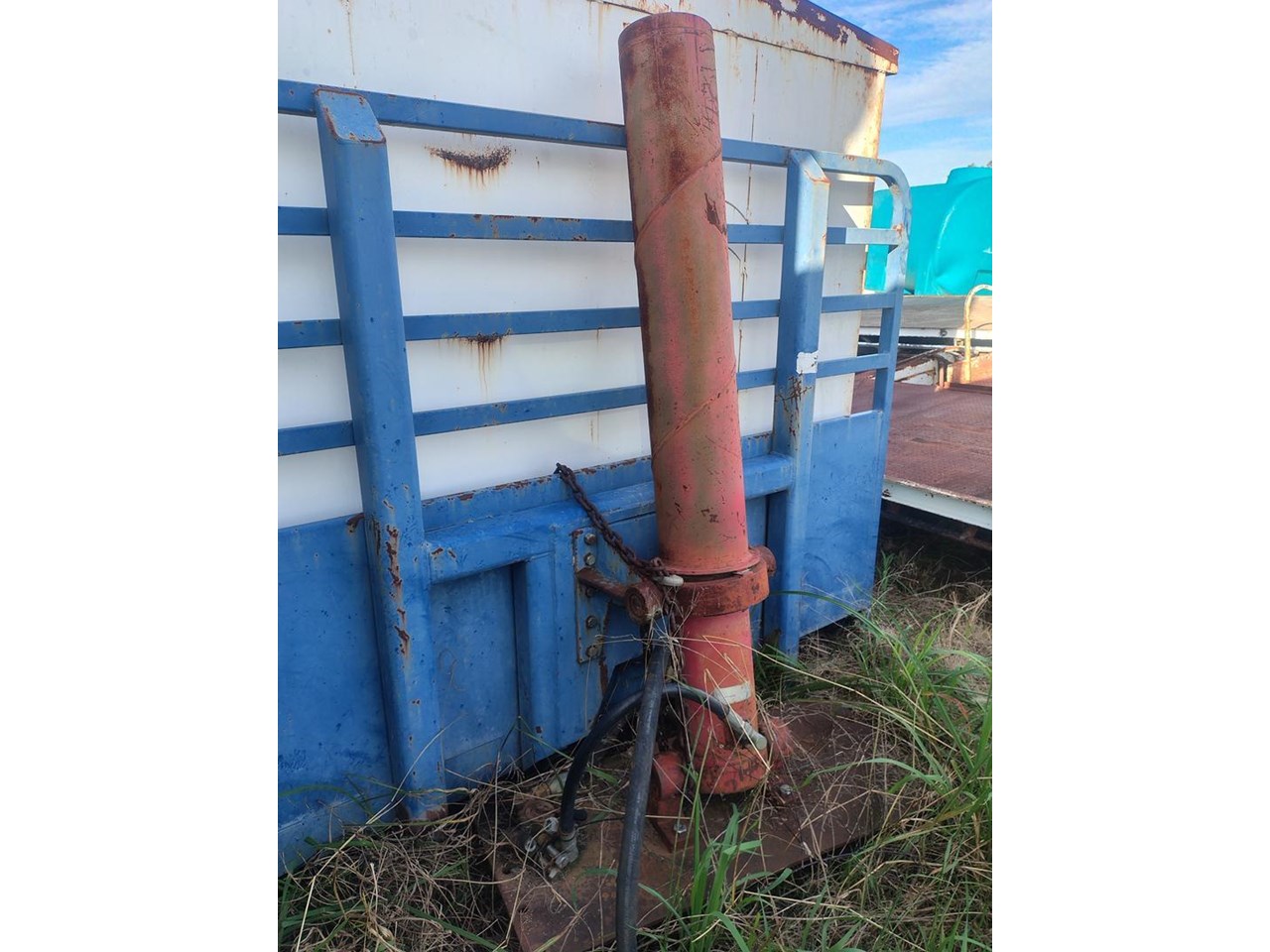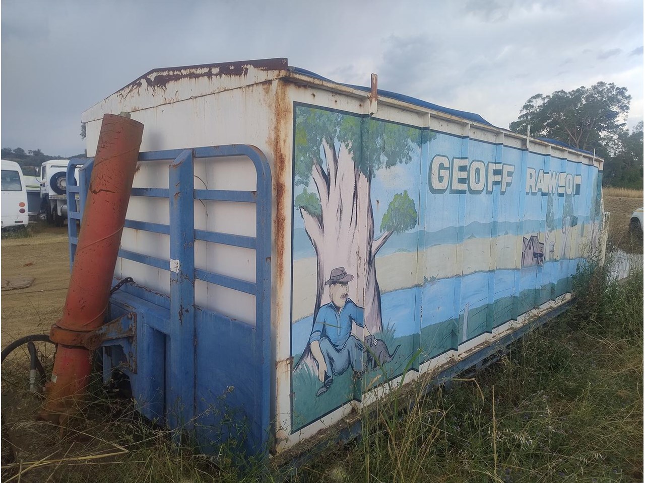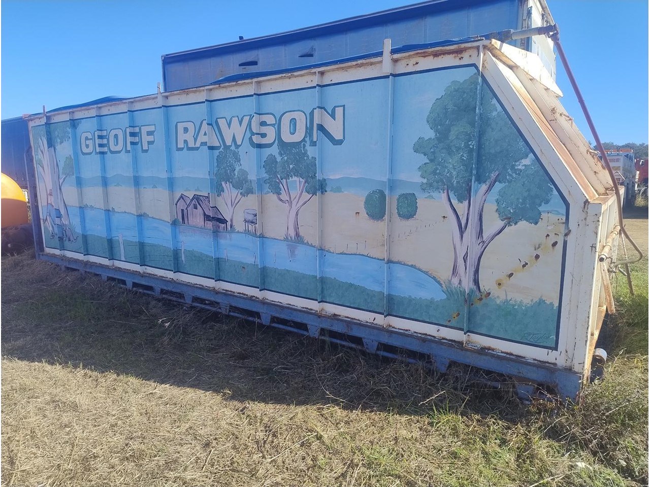 Flat Top Tipping tray with Grain Bin, fitted with front hoist, 7m long, 2460mm wide.