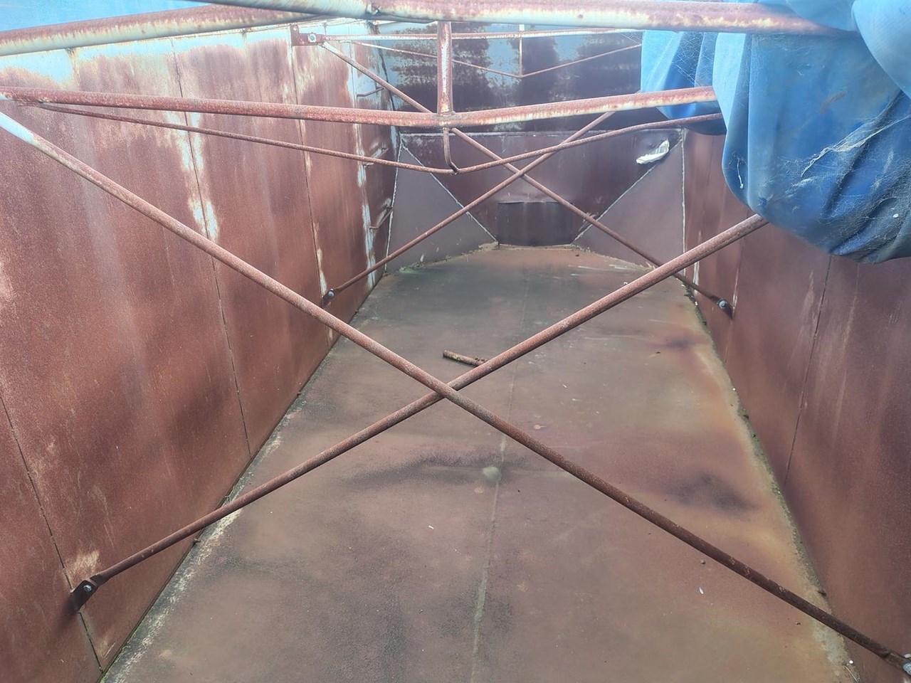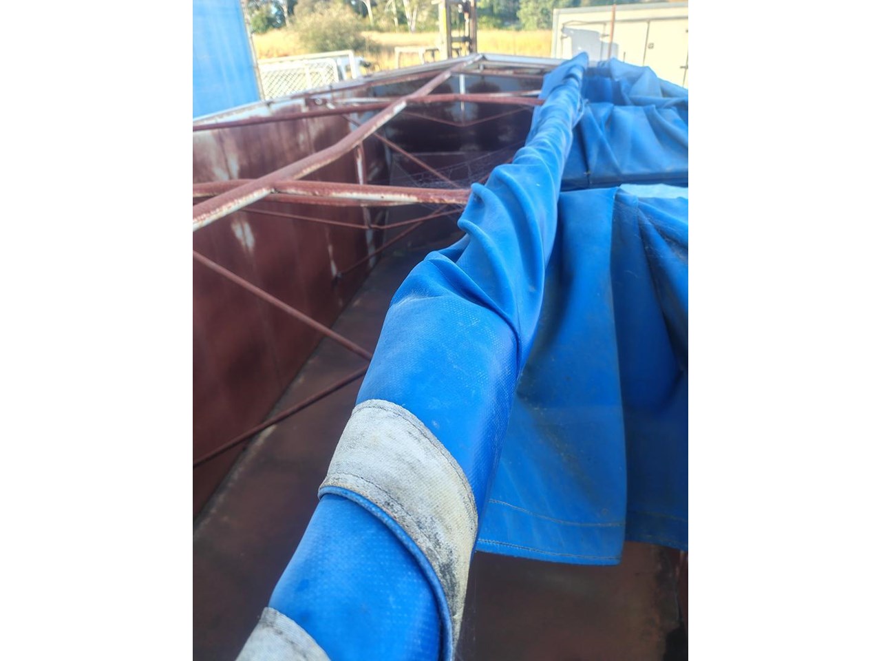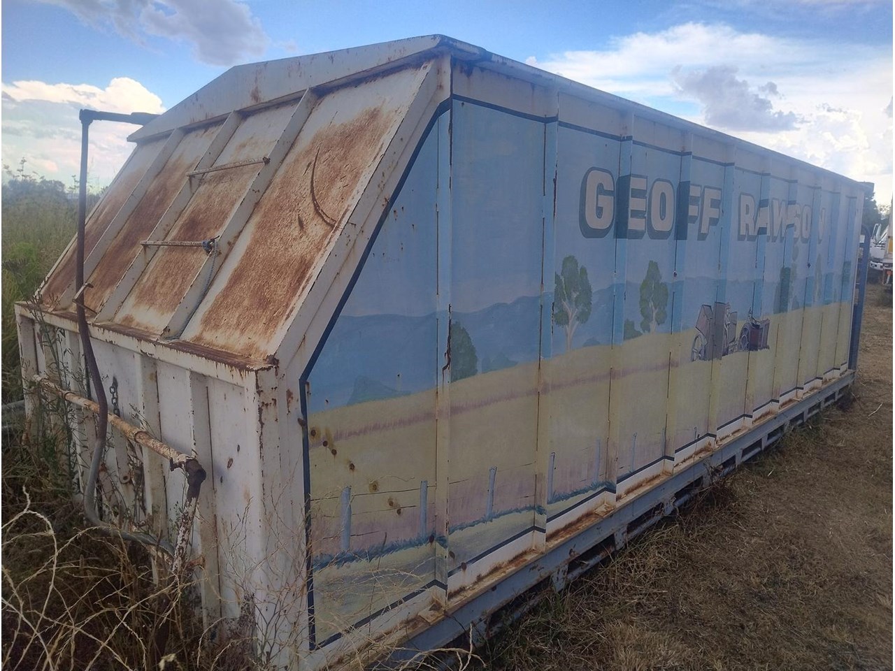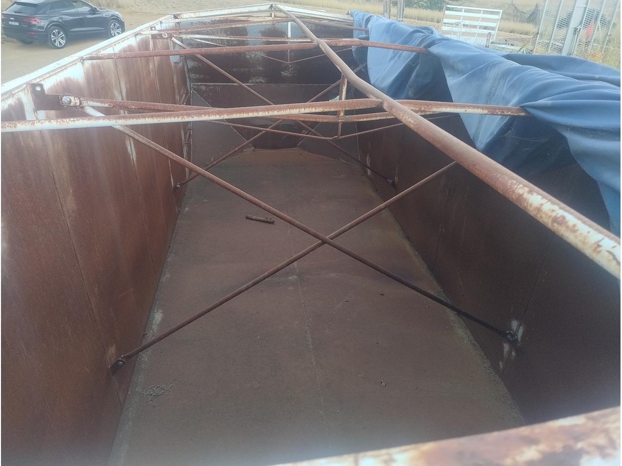 Flat Top Tipping tray with Grain Bin, fitted with front hoist, 7m long, 2460mm wide.