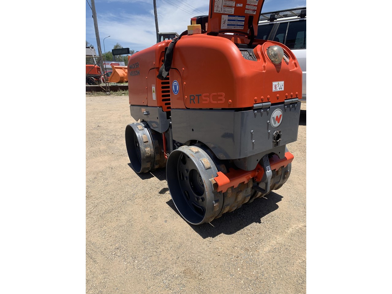 One 2017 Wacker RTSC3 trench roller with 637 verified hours. Fitted with Kohler diesel engine, triple-eye infrared remote (SC3), and below-axle exciter for deep compaction. Adjustable drum width (56 cm 82 cm), trench-safe weight profile (1,465 kg), and operational swing. No full service history unit has undergone recent maintenance checks and is operational.
