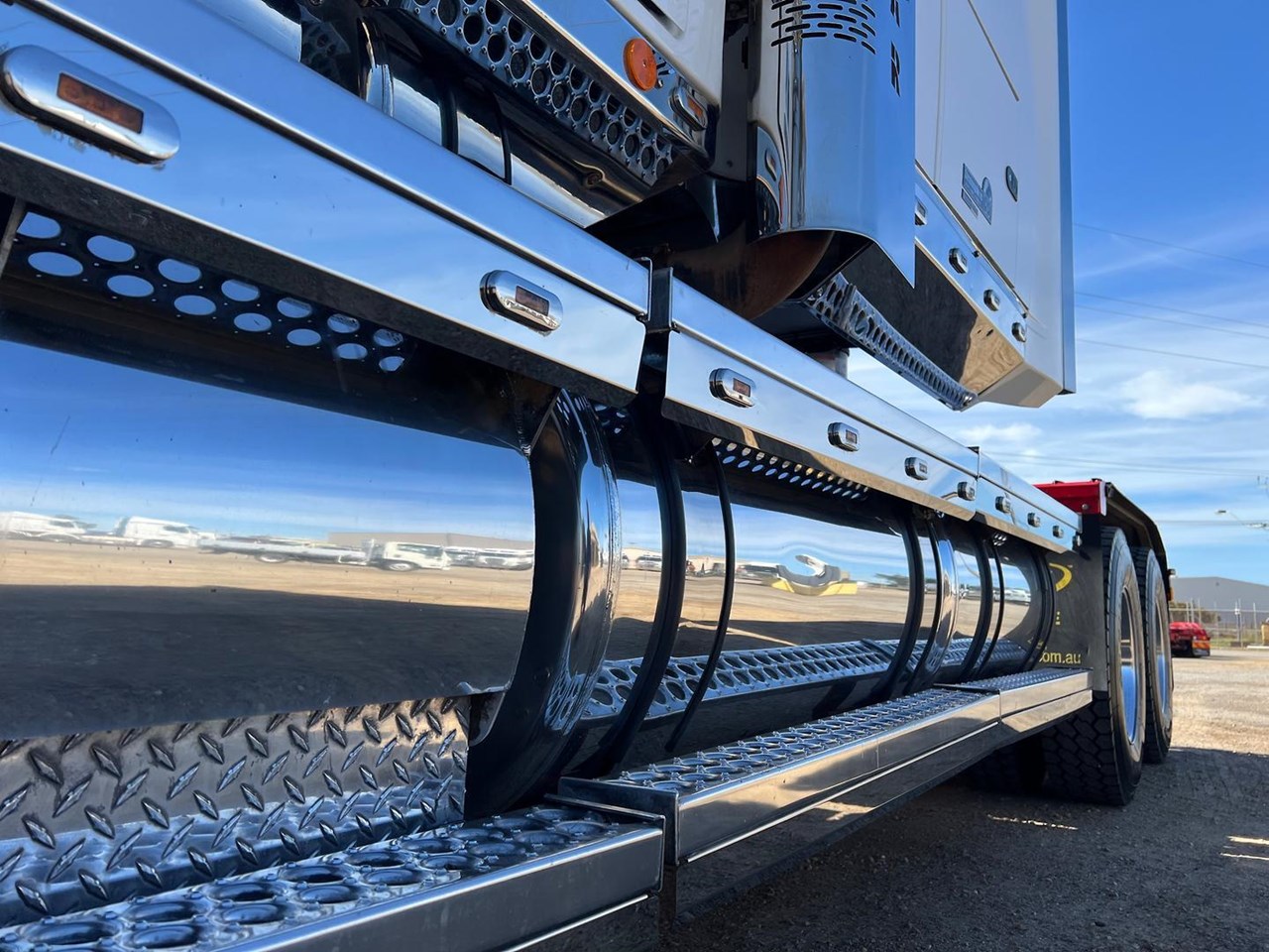 Detroit DD15 @ 560hp, 18 Speed Manual (RTLO20918B) Gearbox, Meritor RT46-160GP Rear Axles @ 4.3:1 Ratio with Front & Rear Crosslocks on Airliner AL46K Airbag Suspension, Alloy Wheels with Offsets to the Steer, Rubber Rear Guards, 2" Jost Sliding QRTT, 54" Stratosphere Sleeper with Ecowind Bunk Cooler, 2 x Rotating Beacon Lights, Quad Alloy Fuel Tanks with 1705 Litre Capacity, Alloy FUPS Bumper Bar, Auto Greaser, Draw Fridge, 2 x UHF, CD/Radio, Tidy Truck with 106 Tonne B Double/Road Train GCM.